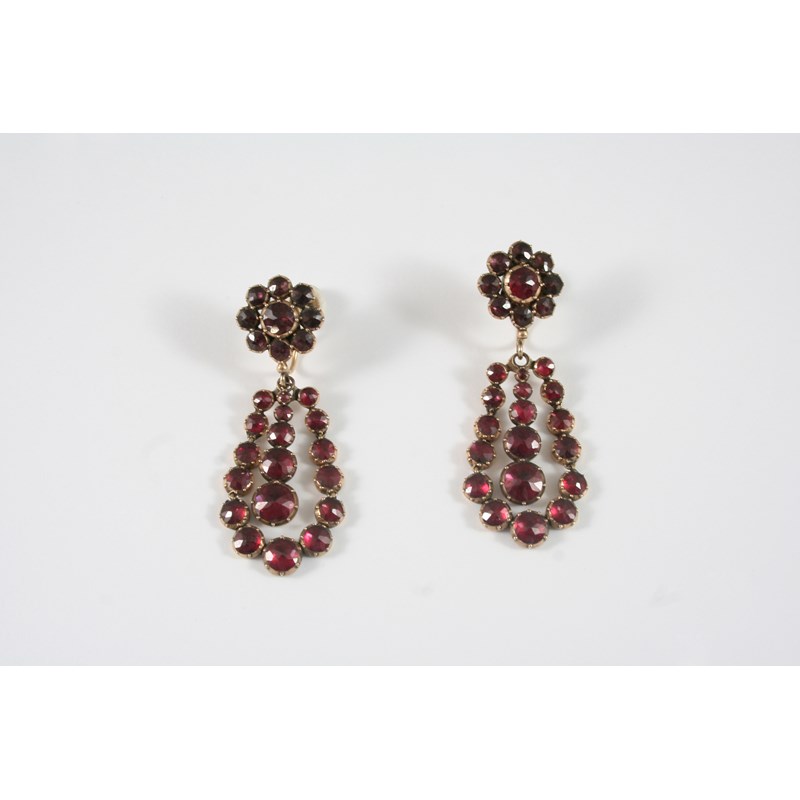 A PAIR OF GEORGIAN GARNET DROP EARRINGS