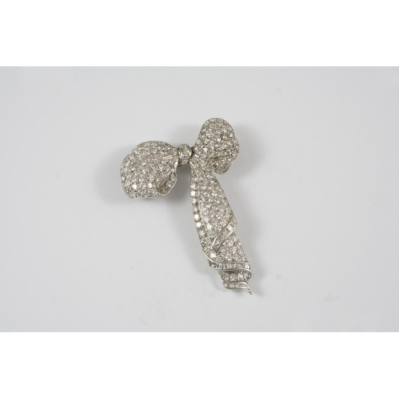 AN EARLY 20TH CENTURY DIAMOND BOW BROOCH