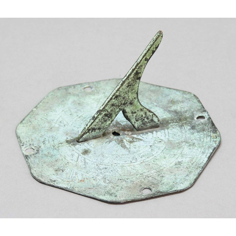 BRASS SUNDIAL, 18th century, of octagonal form, width 16cm