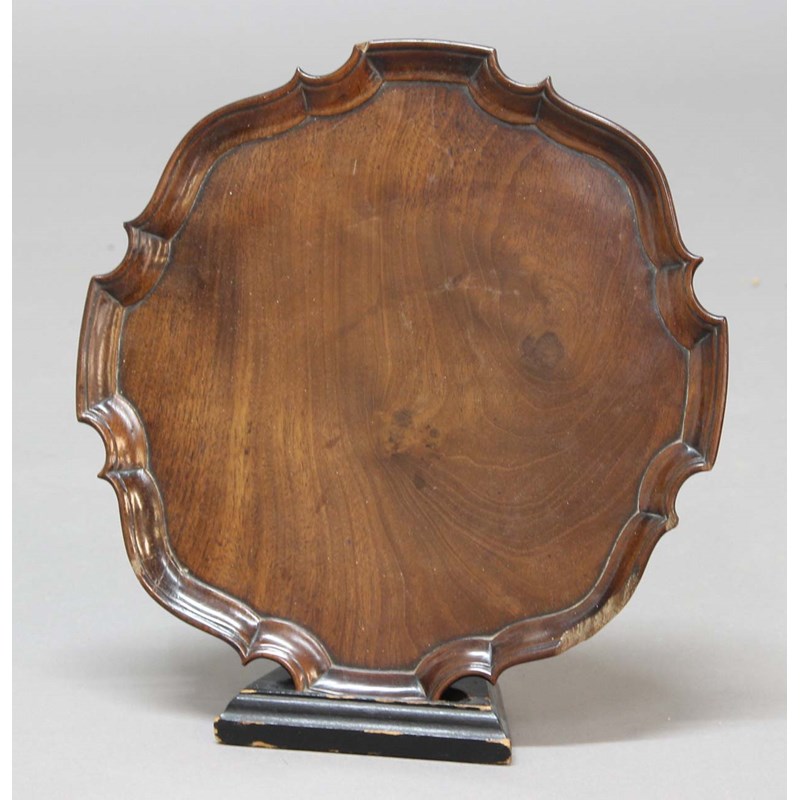 GEORGE III CHIPPENDALE STYLE MAHOGANY TRAY, of silver form with a moulded rim, with a stand, diameter 29cm