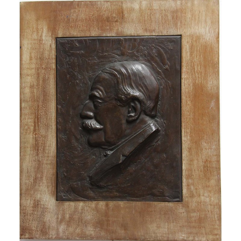 20TH CENTURY SCHOOL, Profile portrait of a moustached gentleman, bronze or bronzed metal, signature to shoulder ?Tom Taylor?, 33cm x 25cm