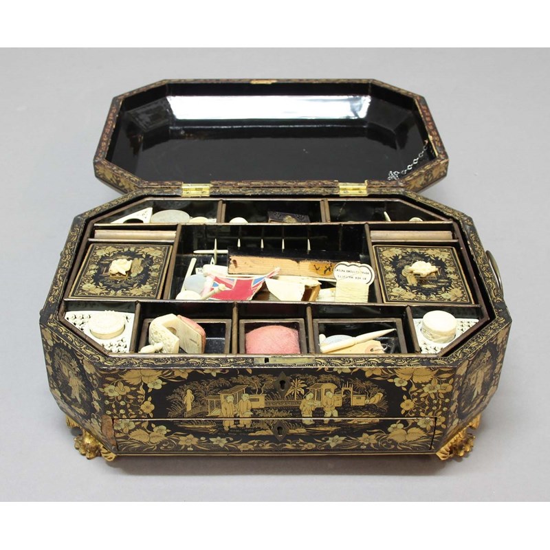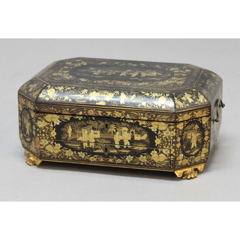 CHINESE EXPORT LACQUERED AND GILT WORK BOX,