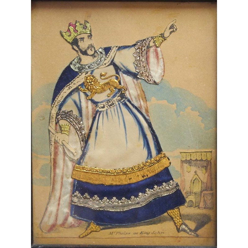 PAIR OF TINSEL PRINTS, to include Mr Phelps as Hamlet and Mr Phelps as King John, in ebonised, moulded frames, image size 14cm x 11cm and 13cm x 10cm (2)