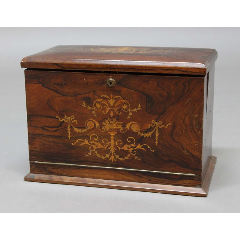 EDWARIAN ROSEWOOD AND INLAID STATIONERY CABINET,
