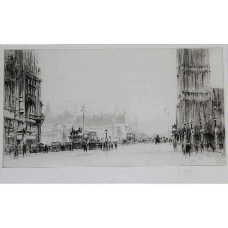 WILLIAM WALCOT (1874-1943) HOUSES OF PARLIAMENT AND WESTMINSTER BRIDGE Etching, signed in pencil 16 x 30cm.
