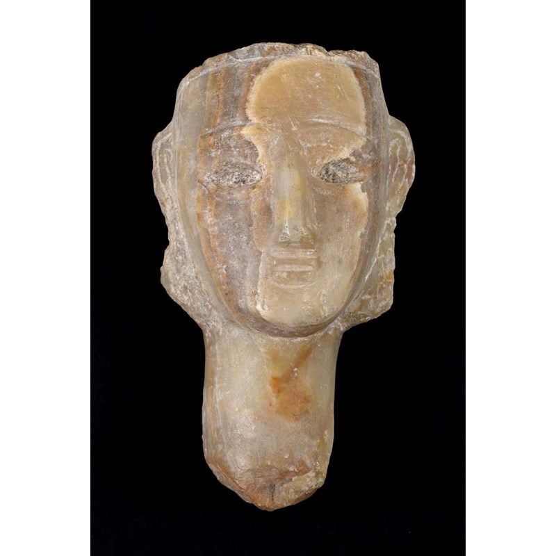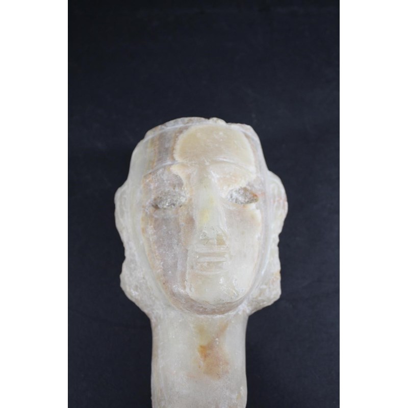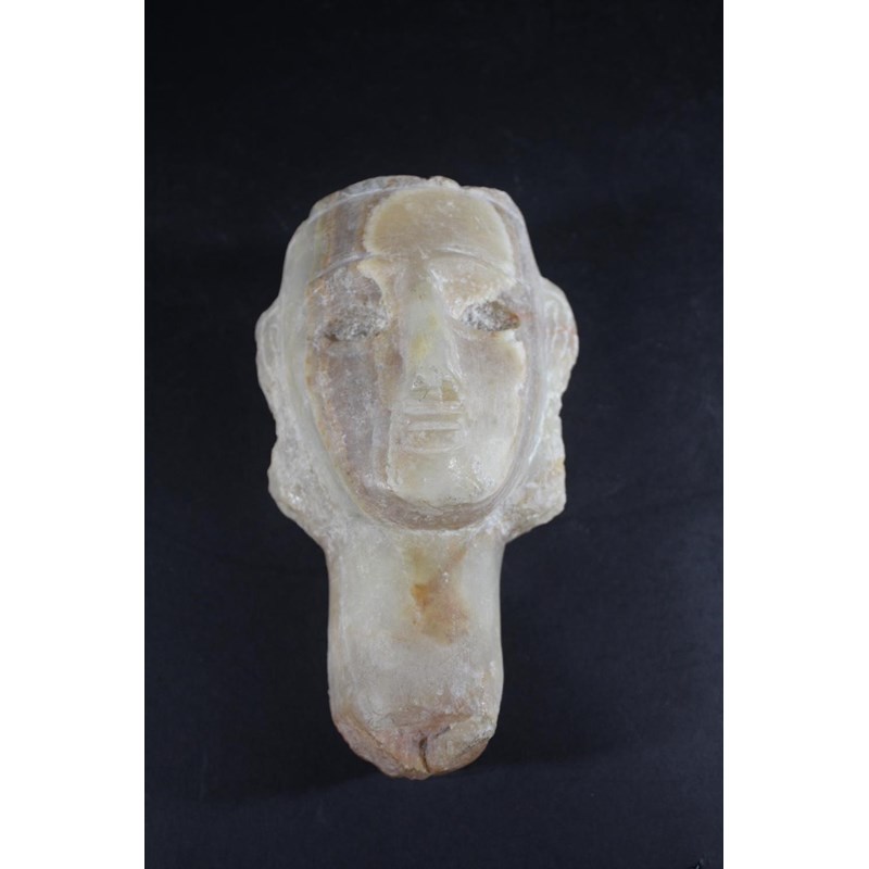 CARVED ALABASTER HEAD - ANTIQUITY possibly South Arabian 2nd century BC-2nd century AD, a carved alabaster head of a lady. 20.5cms high