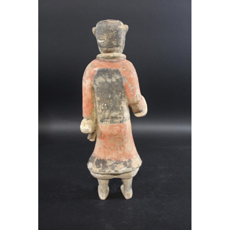a large painted pottery male figure, with a thermoluminescence analysis report from Oxford Authentication Ltd in 2013. Han Dynasty (206BC-220AD). In a fitted modern box, figure 44.5cms high