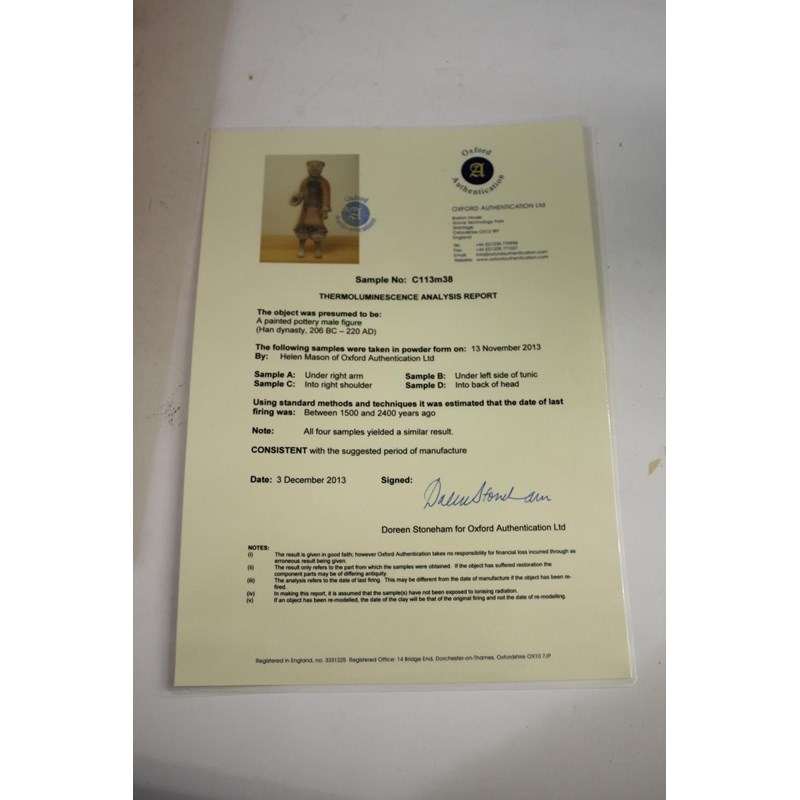 CHINESE HAN DYNASTY POTTERY FIGURE & CERTIFICATE