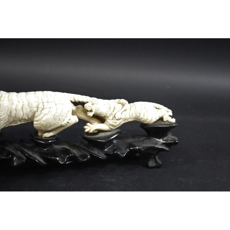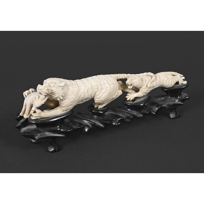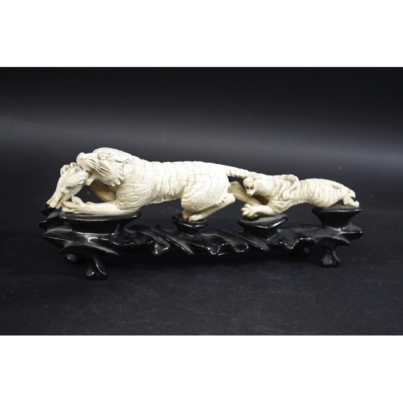 JAPANESE CARVED IVORY TIGER GROUP