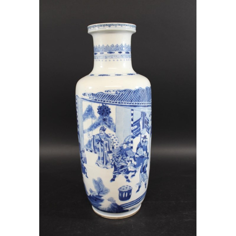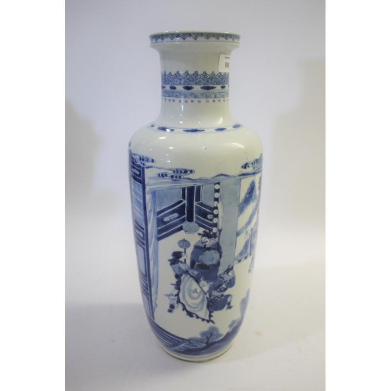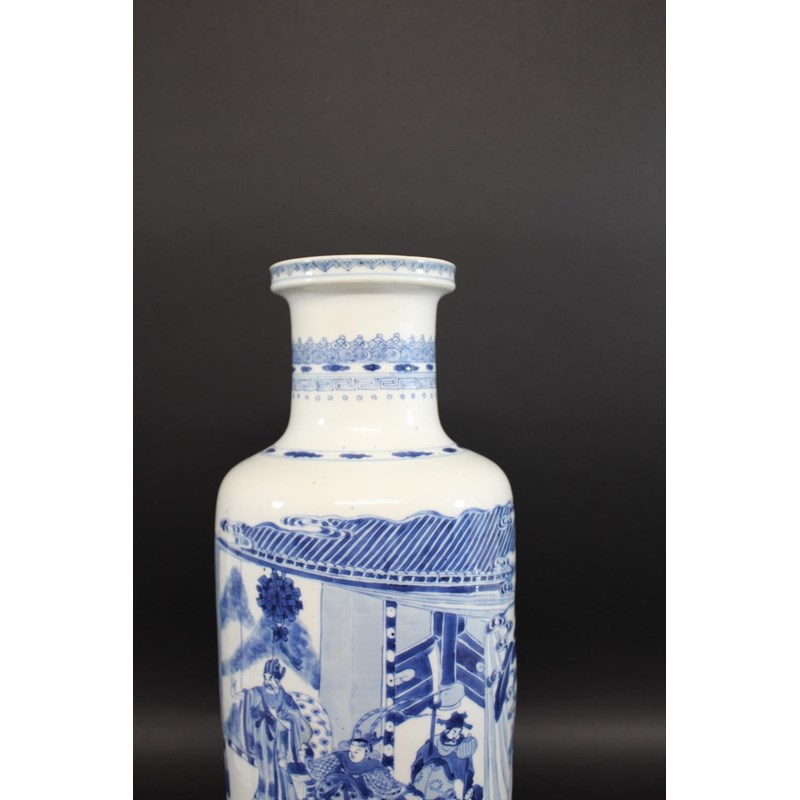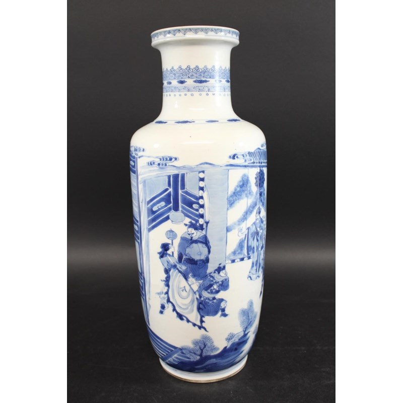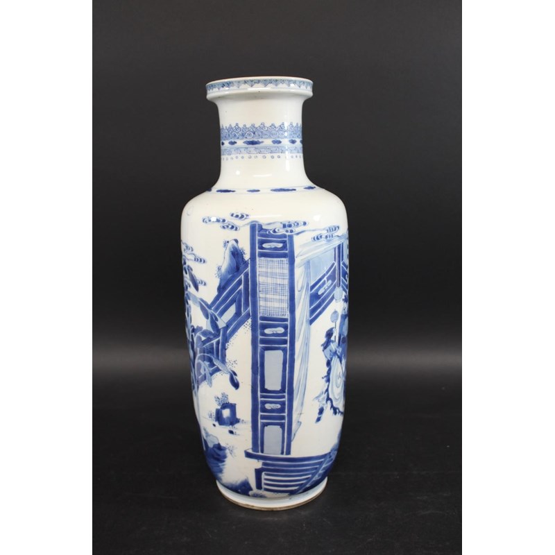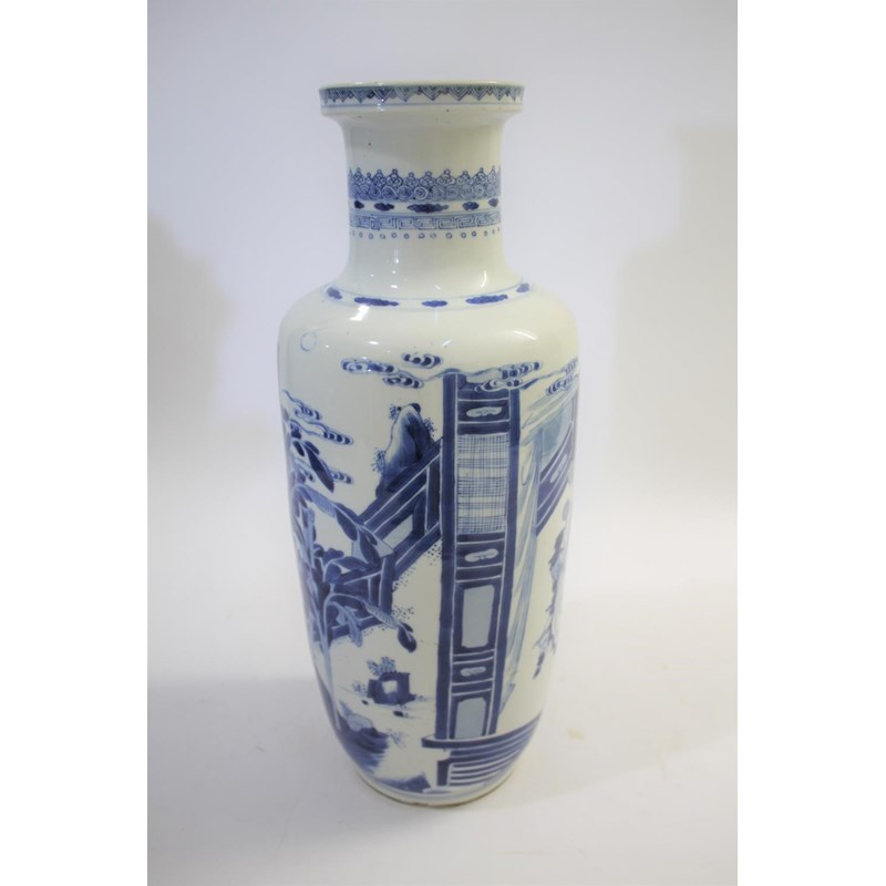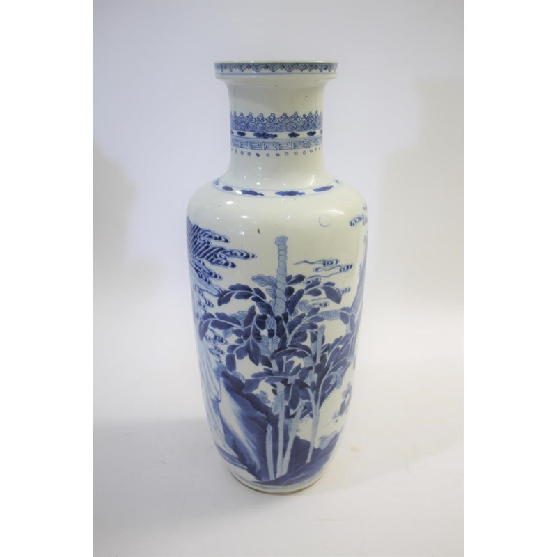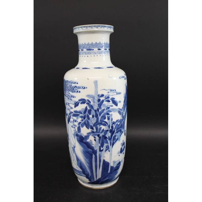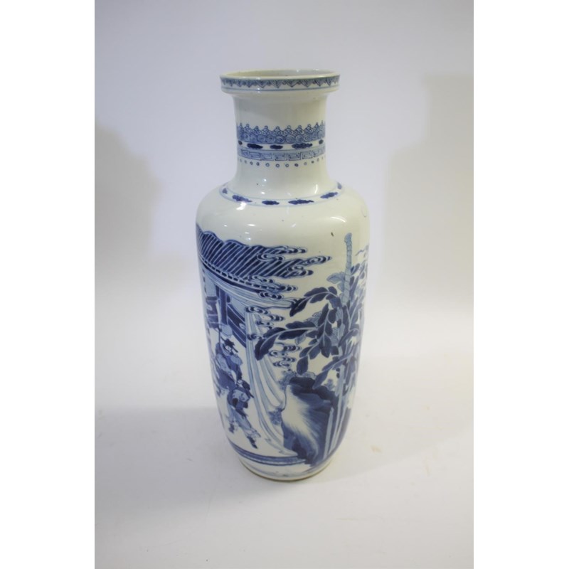 CHINESE BLUE & WHITE PORCELAIN ROULEAU VASE - KANGXI