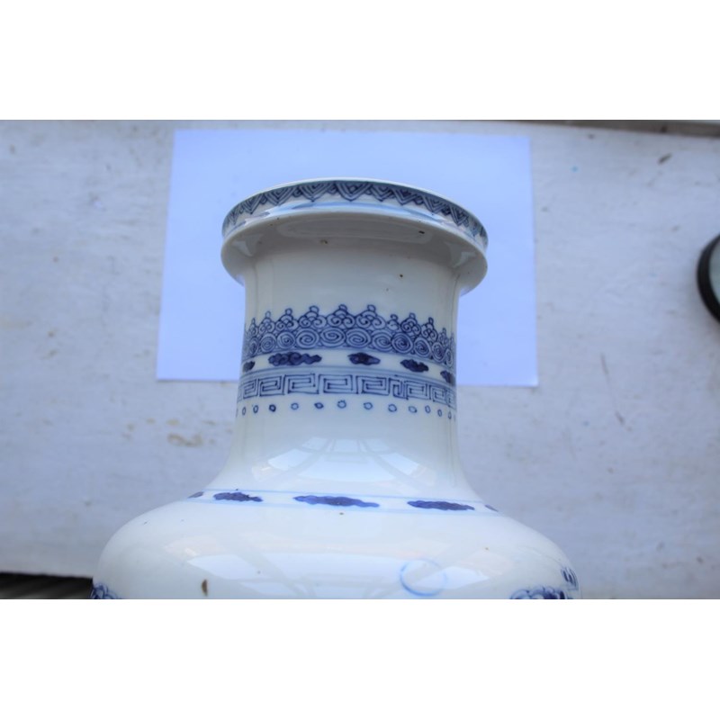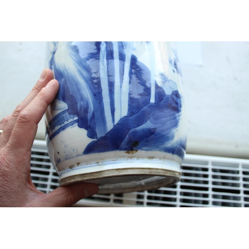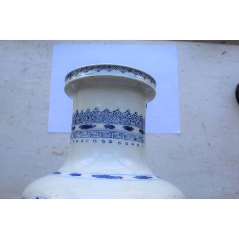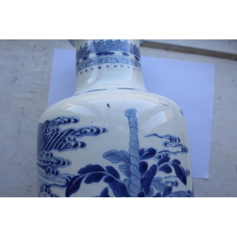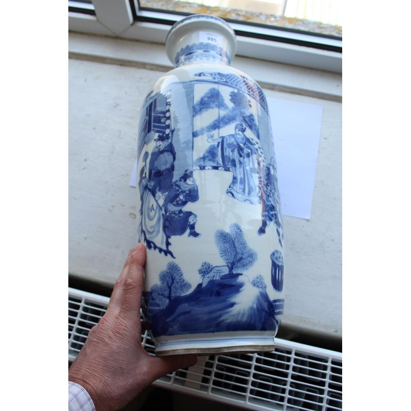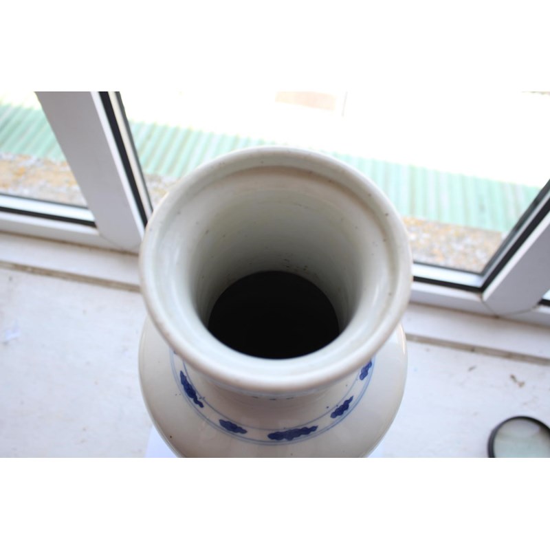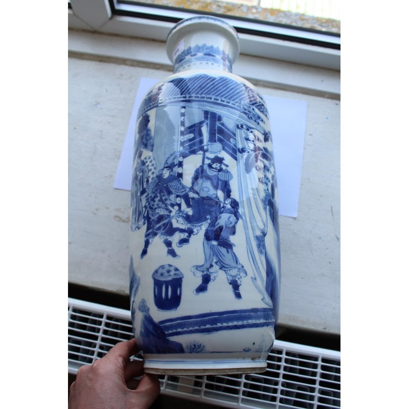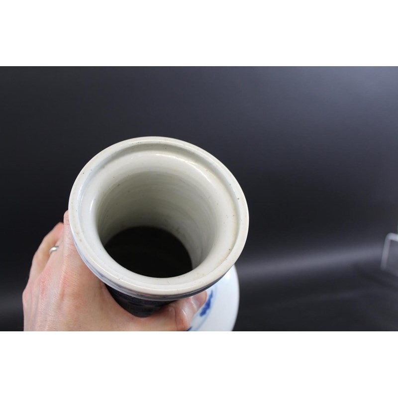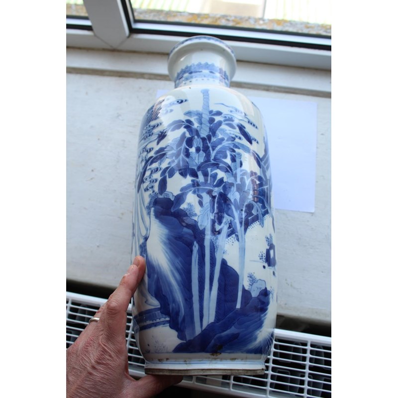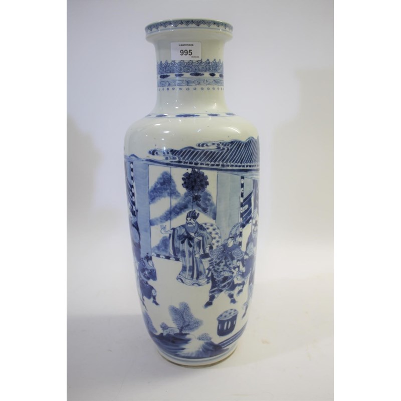 CHINESE BLUE & WHITE PORCELAIN ROULEAU VASE - KANGXI