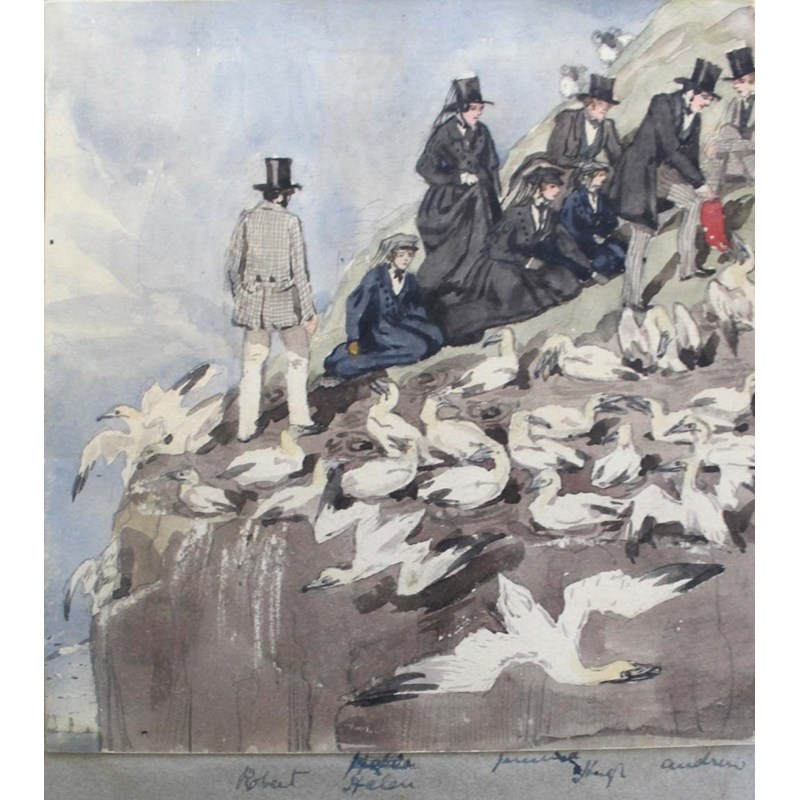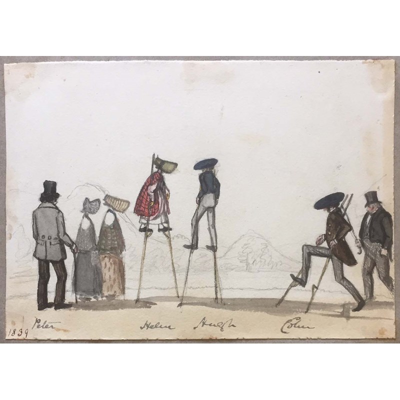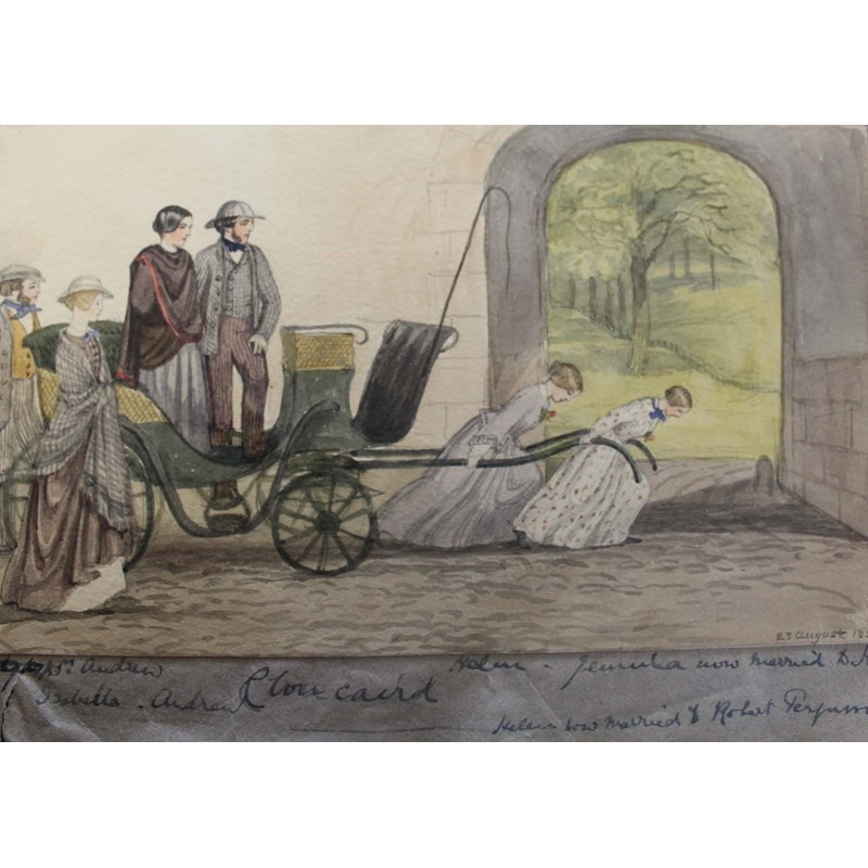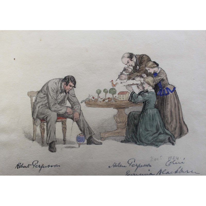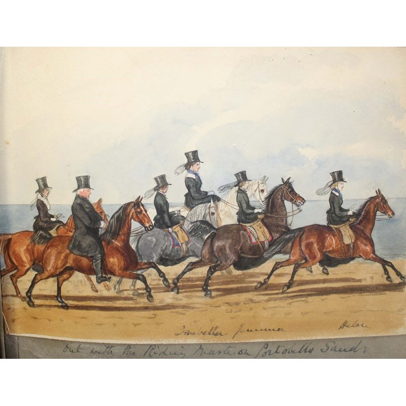 Comprising approximately 83 items (some scraps), each gummed down, including whimsical figure subjects, animal subjects, figure groups and scenes of the Scottish Victorian middle classes at leisure, sport and recreation etc, the majority c.1838-c.1860 (the latest 1887), principally watercolours, many captioned, with some etchings and other prints by other hands also included, contemporary half morocco, 4to; with the biography `Jemima` by Rob Fairley, Edinburgh 1988 (2)