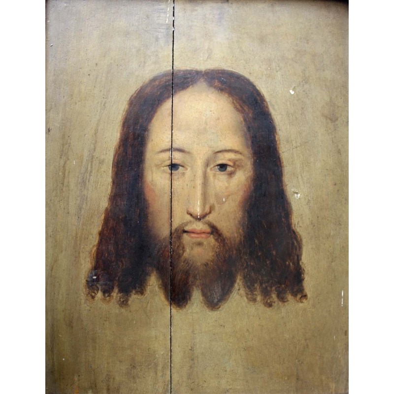* The subject derives from a number of possible sources including Jan Van Eyck and Petrus Christus (c.1440-1445) but David's `Head of Christ` from the mid-1490s (John G. Johnson Collction, Philadelphia Museum of Art) may also be considered.