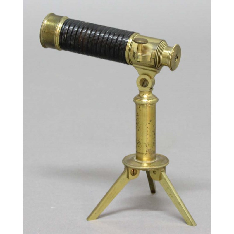 BRASS SEVEN DRAWER TABLE TELESCOPE, inscribed E Solomons, 27 Old Bond Street, London, 1", on a brass tripod stand, length open 40cm