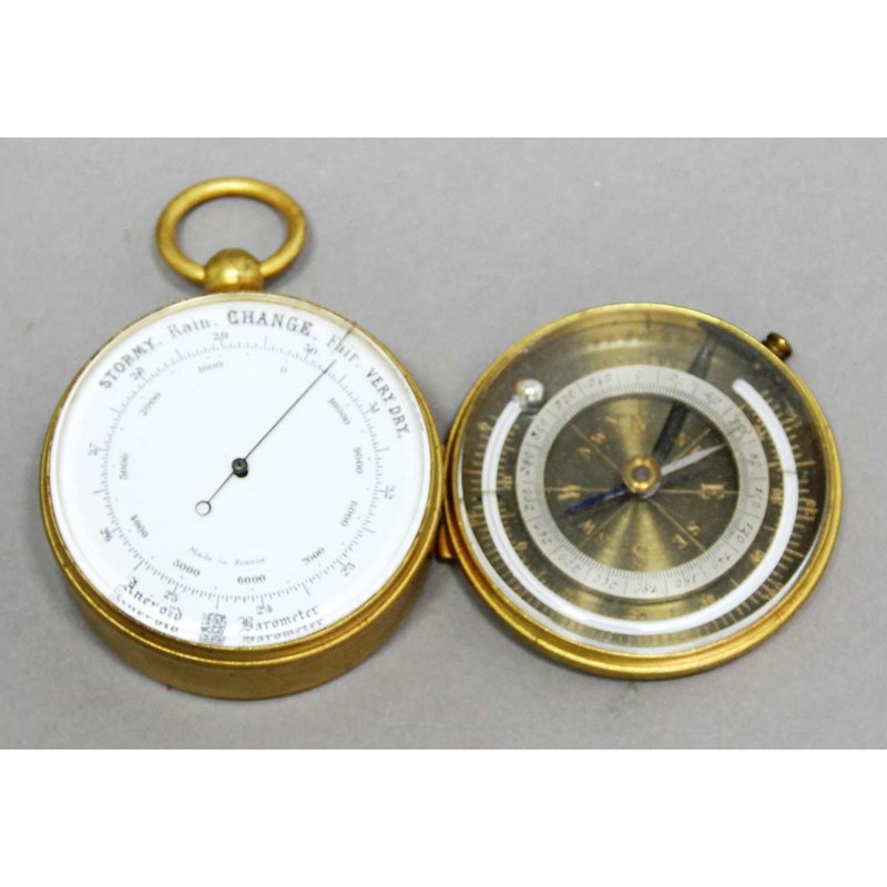 FRENCH POCKET ANEROID BAROMETER COMPASS AND THERMOMETER,