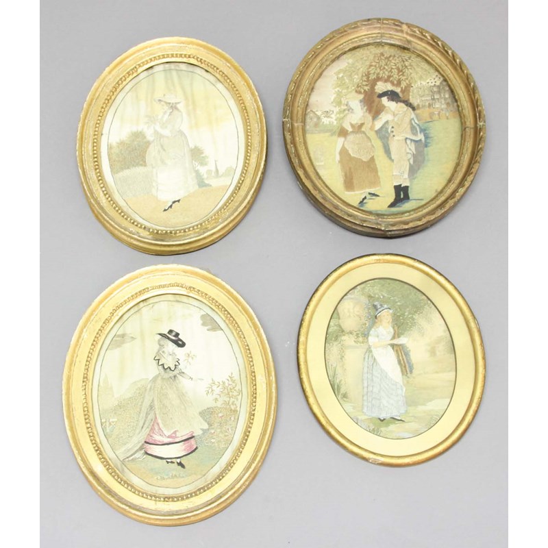 PAIR OF GEORGIAN SILKWORK PICTURES,