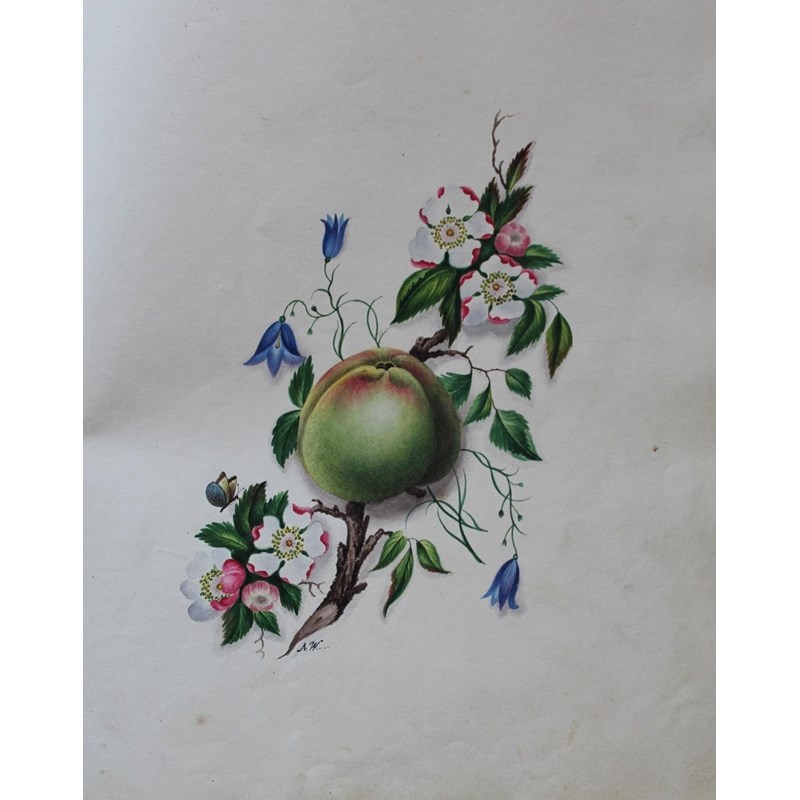 AN ALBUM OF DRAWINGS & WATERCOLOURS, c.1832-1850 comprising approximately 31 leaves of writing, pencil portraits, ink cartoons, sketches and watercolours (landscapes and floral studies) by Amelia Williamson and other hands, some signed/initialled/dated, many blank pages