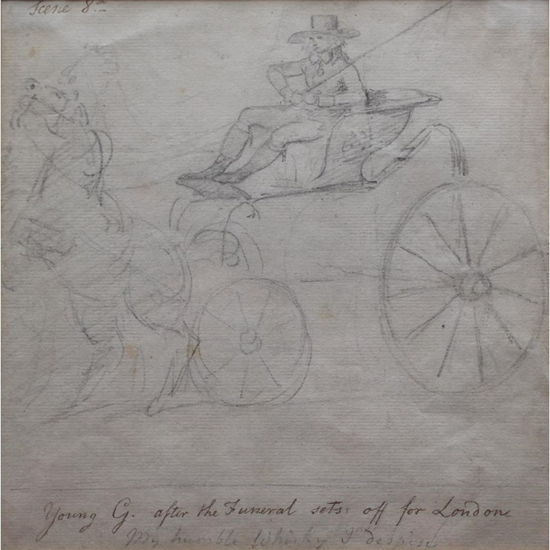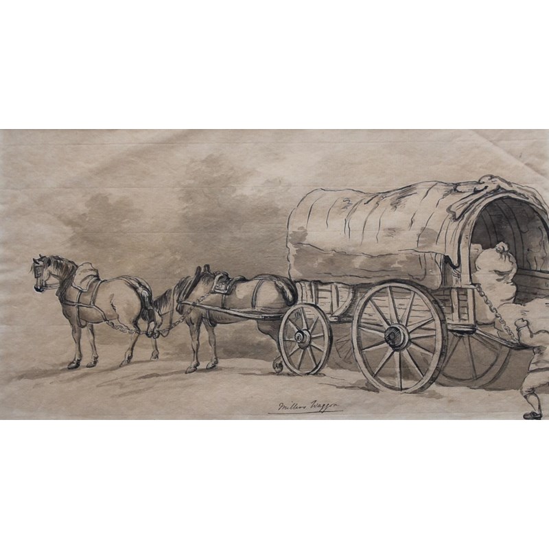 Two, the former inscribed with title in ink and in pencil, pencil drawings, 19.5 x 19.5cm and 19 x 15cm.; with four ink drawings by Juliana Conyers of `Coal Cart`, `Millers Waggon` and two other horsedrawn carts or carriages, one signed Juliana, two inscribed, framed as two, 17 x 31cm and smaller (4)
