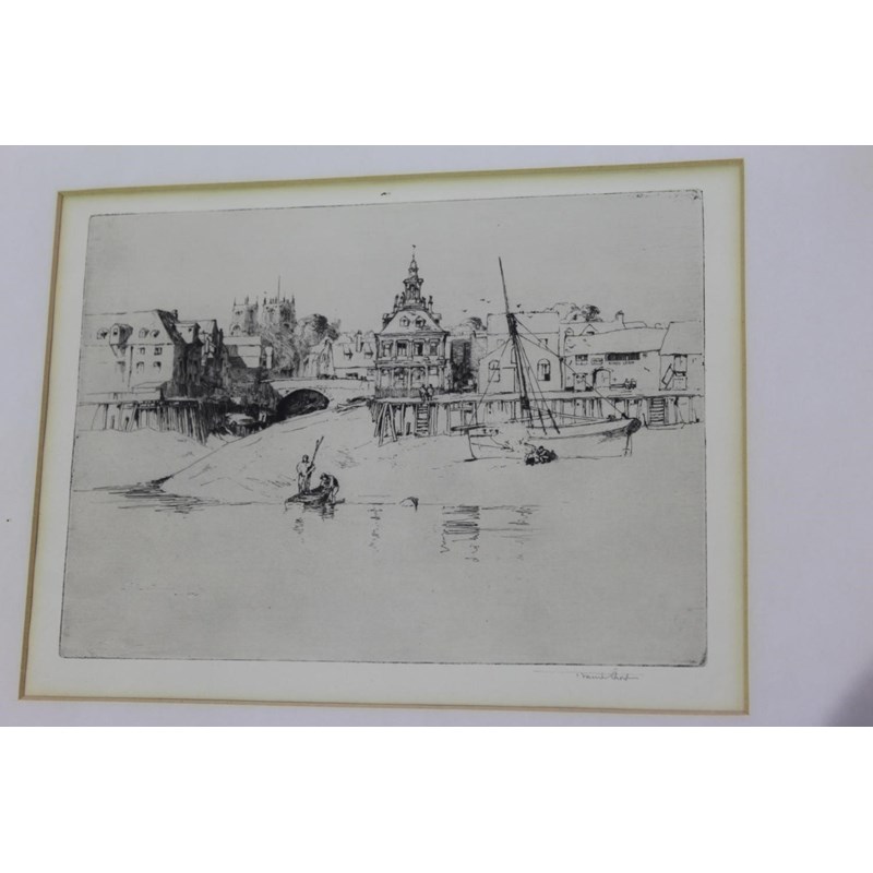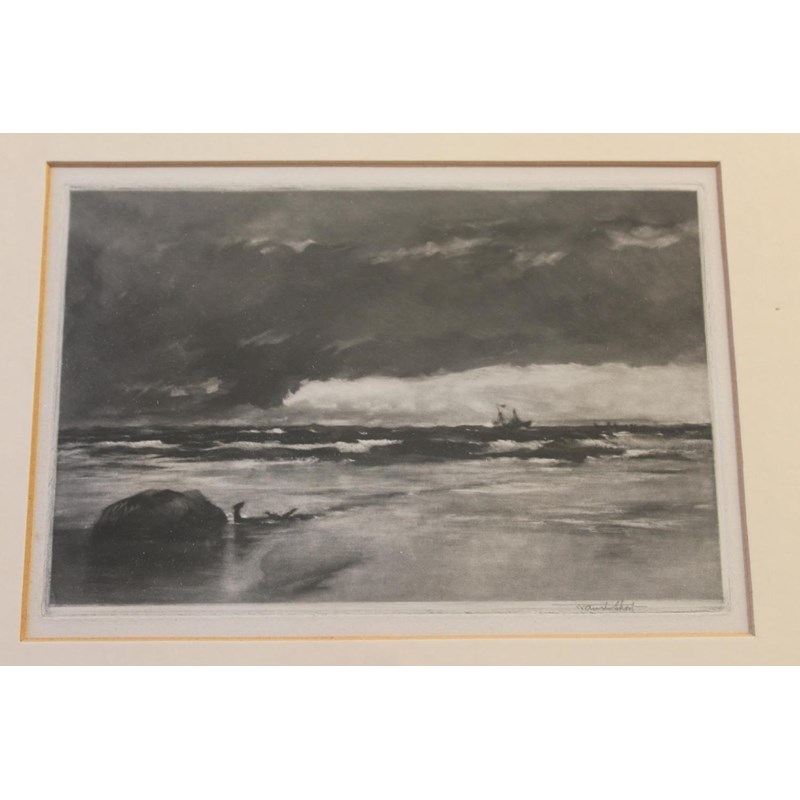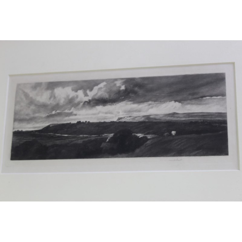 comprising nine mezzotints, viz; `Nithsdale` (1891), 19.5 x 31cm; `Road near Oxford` (1898) after Peter de Wint, 14.5 x 22cm; `A Yorkshire Road, Wensleydale` (1898), 10.5 x 28.5cm; `A Slant of Light in Polperro Harbour, No.2` (1901), 19 x 25.5cm.; `The Lifting Cloud` (1902), 14 x 22cm; `Madame de Lamballe` (1902) after Antoine Vestier, 40 x 32.5cm.; `George Huddesford and John C Bampfylde` (1905) after Sir Joshua Reynolds, 43 x 35cm.; `Cottage and Harvesters` (1907) after Peter de Wint, 15 x 26cm.; and `Evening on the Thames` (1912), 21.5 x 29.5cm; and an etching, King's Lynn, 19.5 x 27cm; each signed in pencil (10)