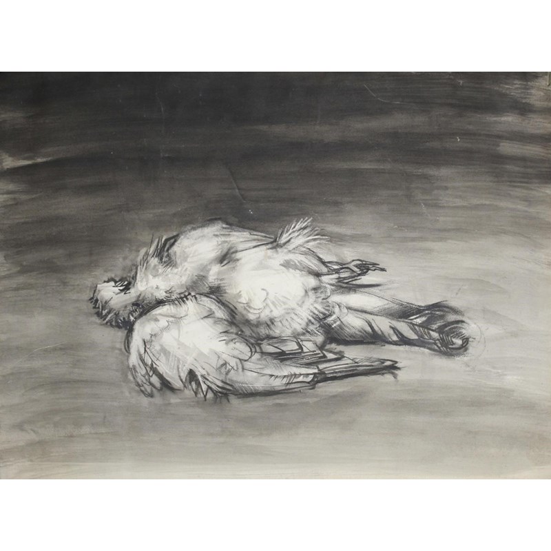 with a charcoal and wash sketch of a dead bird, 51 x 70cm; and a charcoal and blue wash study of a horse's head, 58 x 77cm, each by Middleditch, these two unframed and rolled. (3)