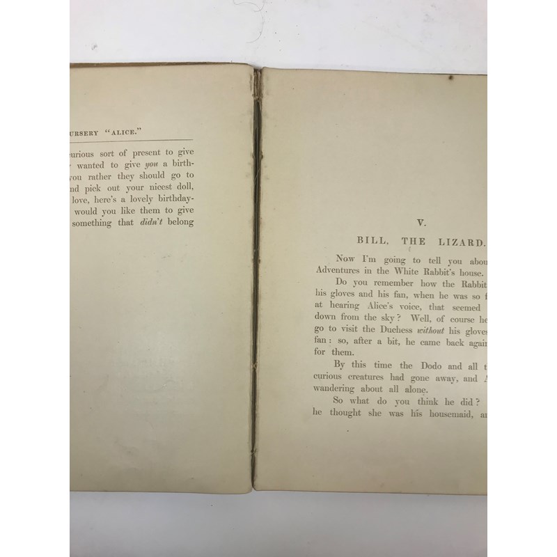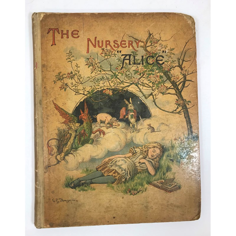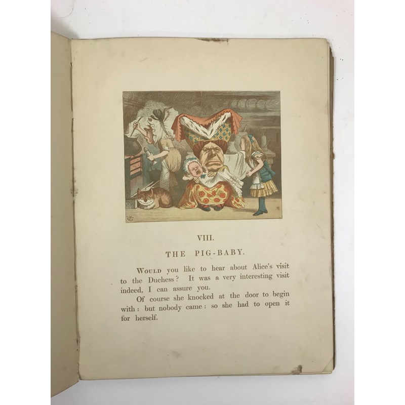 Dodgson, Charles. The Nursery 'Alice', People's Edition, half-title, frontispiece and coloured illustrations after John Tenniel, lacking tissue guard, some spotting and soiling, original cloth-backed pictorial boards, extremities worn, soiled, 8vo, London: Macmillan and Co., 1889 [1892]