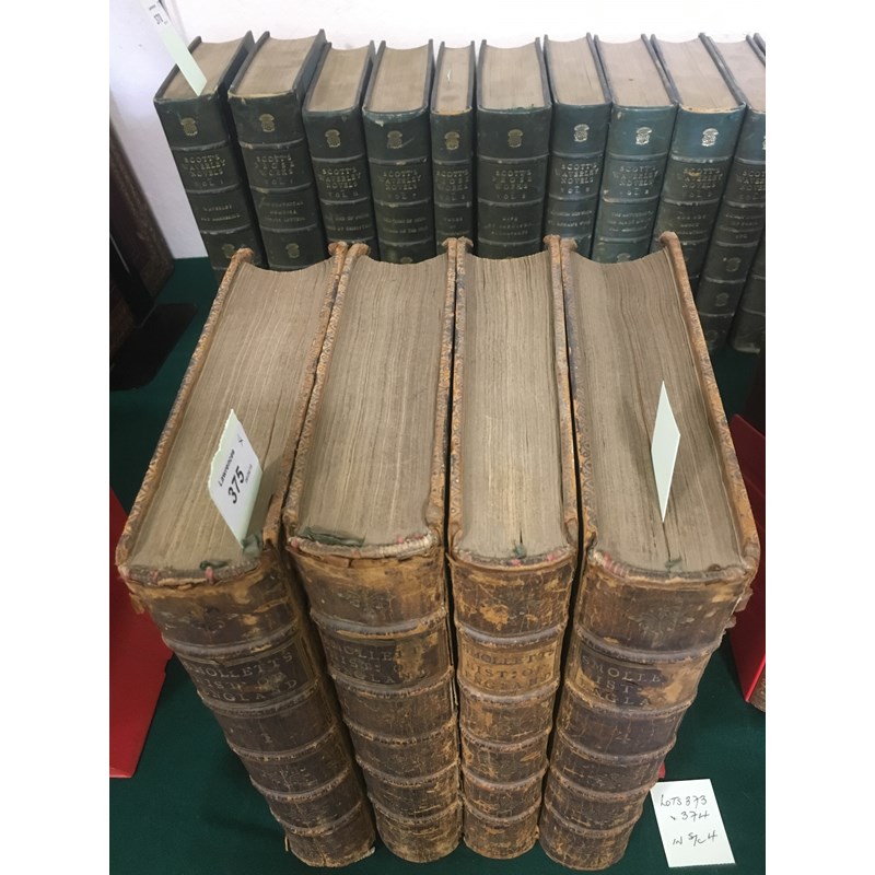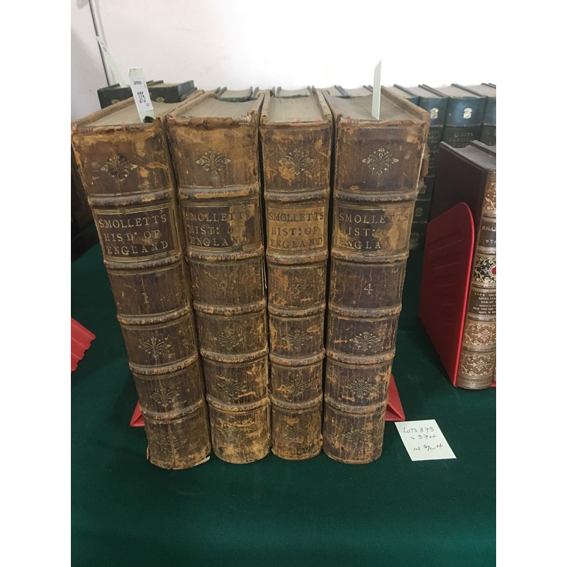 Smollett, Tobias. A Complete History of England, 4 volumes, first edition, engraved frontispieces, folding engraved map, errata leaf at the end of volume one, some browning, contemporary calf, heavily rubbed, joints cracked, bookplate of Coker Court, 4to, London: James Rivington and James Fletcher, 1757-1758