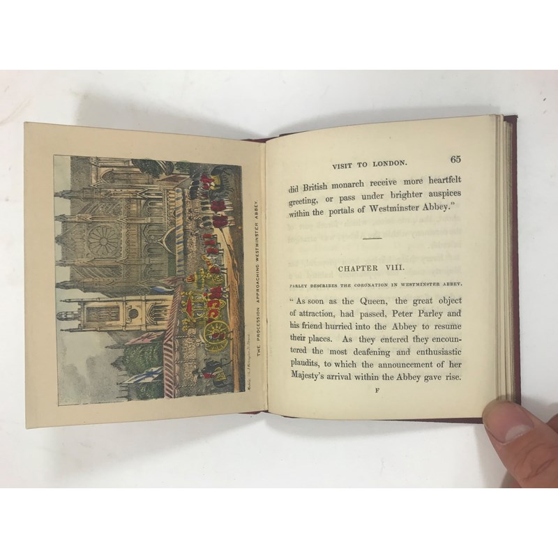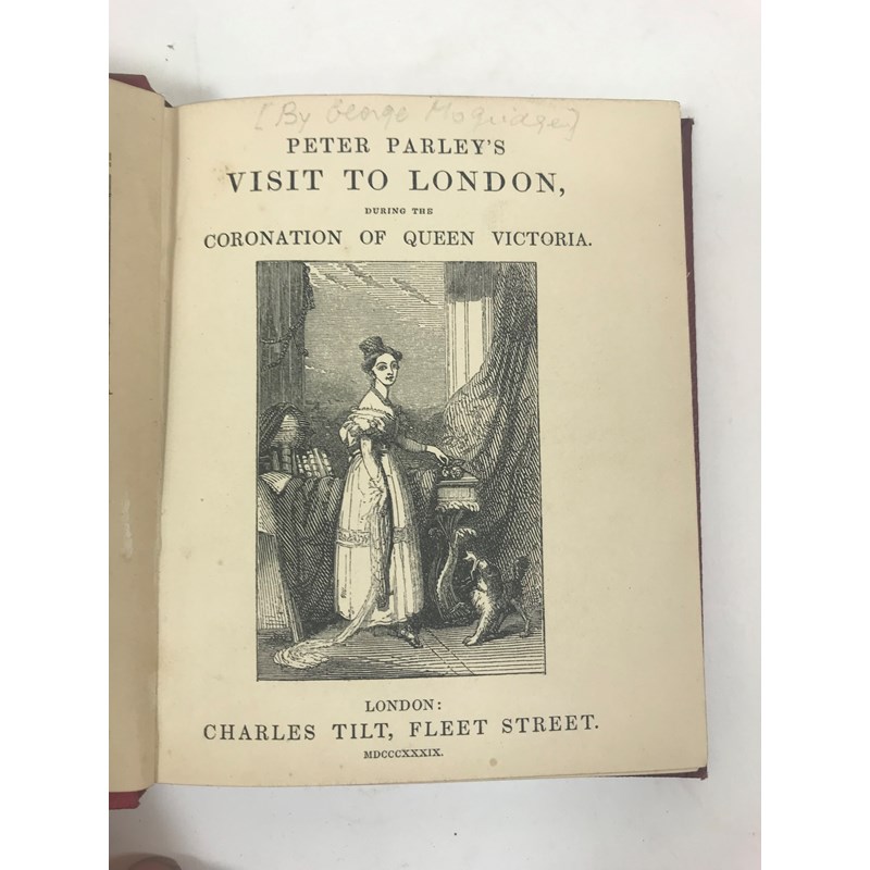 Parley, Peter. Peter Parley's Visit to London, during the Coronation of Queen Victoria, first edition, half-title, 6 hand-coloured lithographed plates, 2pp. of advertisements at end, publisher's original cloth gilt, 12mo, London: Charles Tilt, 1839