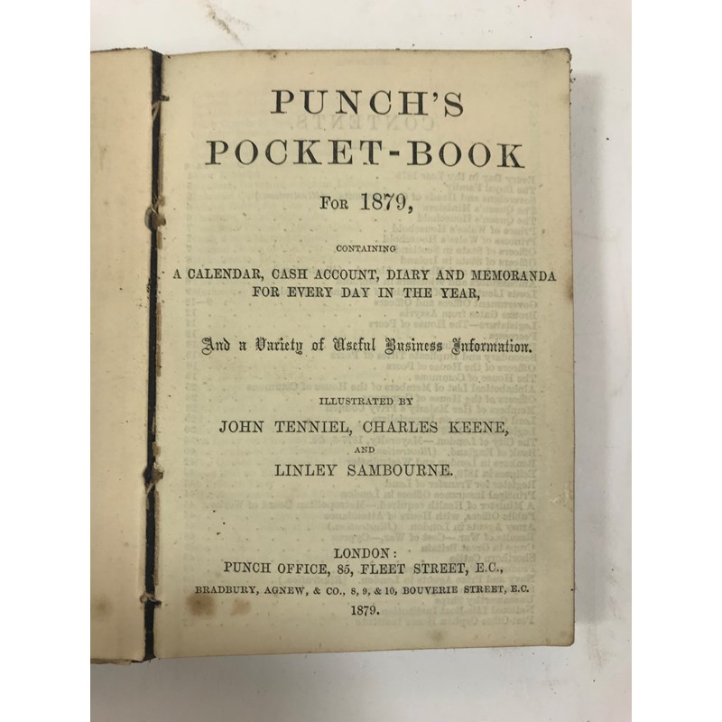 Punch's Pocket Book. A broken run of 31 volumes, including 9 duplicates, folding hand-coloured frontispieces and illustrations after John Tenniel, Charles Keene, Linley Sambourne and others, original limp morocco, a few volumes a.f., 12mo, London: Punch Office 1847-1881, sold not subject to return