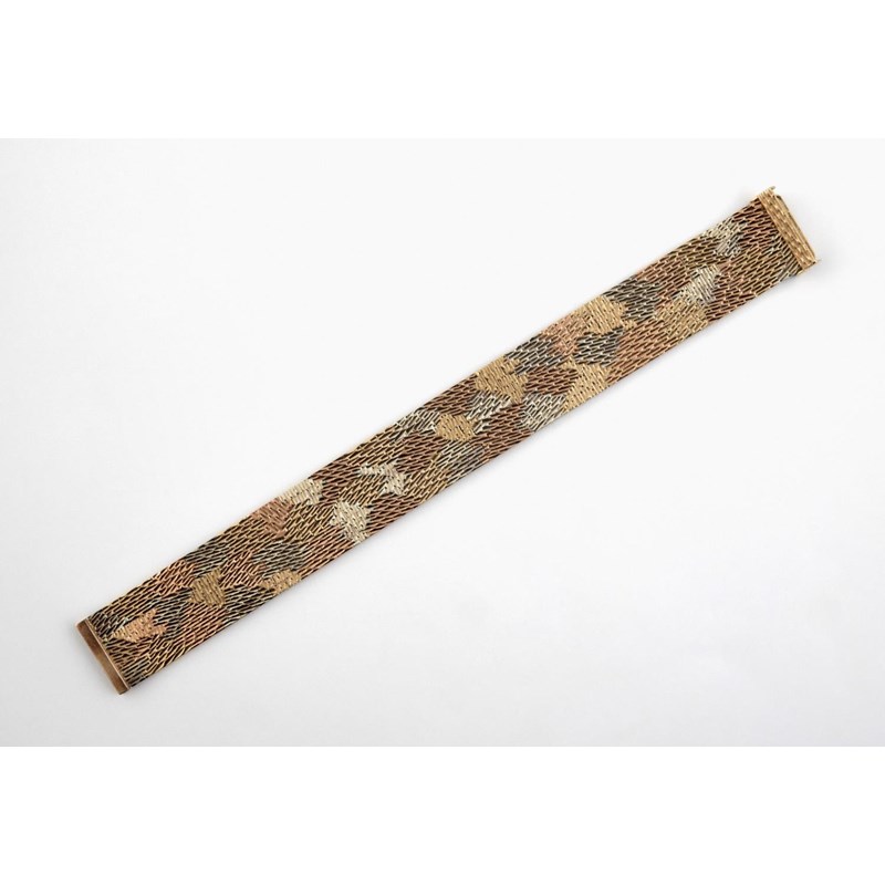 A 9CT THREE COLOUR GOLD BRACELET with concealed clasp, 18cm long, 46 grams