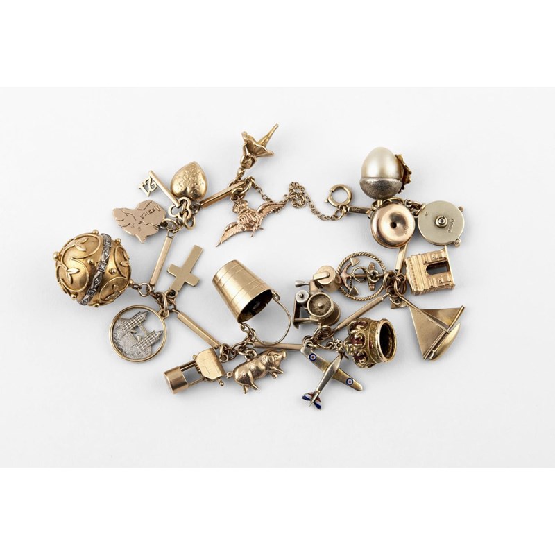A 9CT GOLD CHARM BRACELET