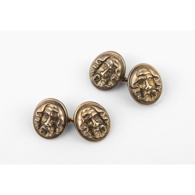 A PAIR OF 19TH CENTURY GROTESQUE MASK CUFFLINKS of oval-shape