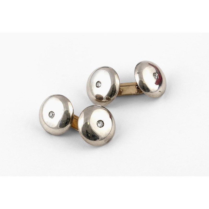 A PAIR OF AUSTRIAN TWO COLOUR GOLD AND DIAMOND CUFFLINKS