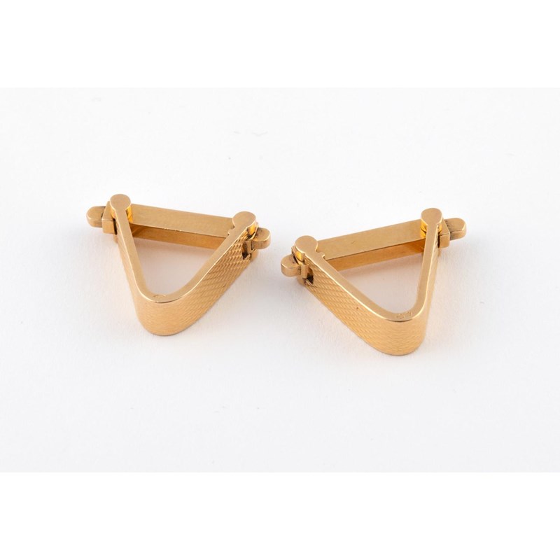 A PAIR OF FRENCH 18CT GOLD CUFFLINKS of chevron-shape with engine turned decoration, French eagle's head mark for 18ct gold, circa 1950, 11.1 grams