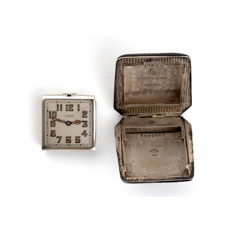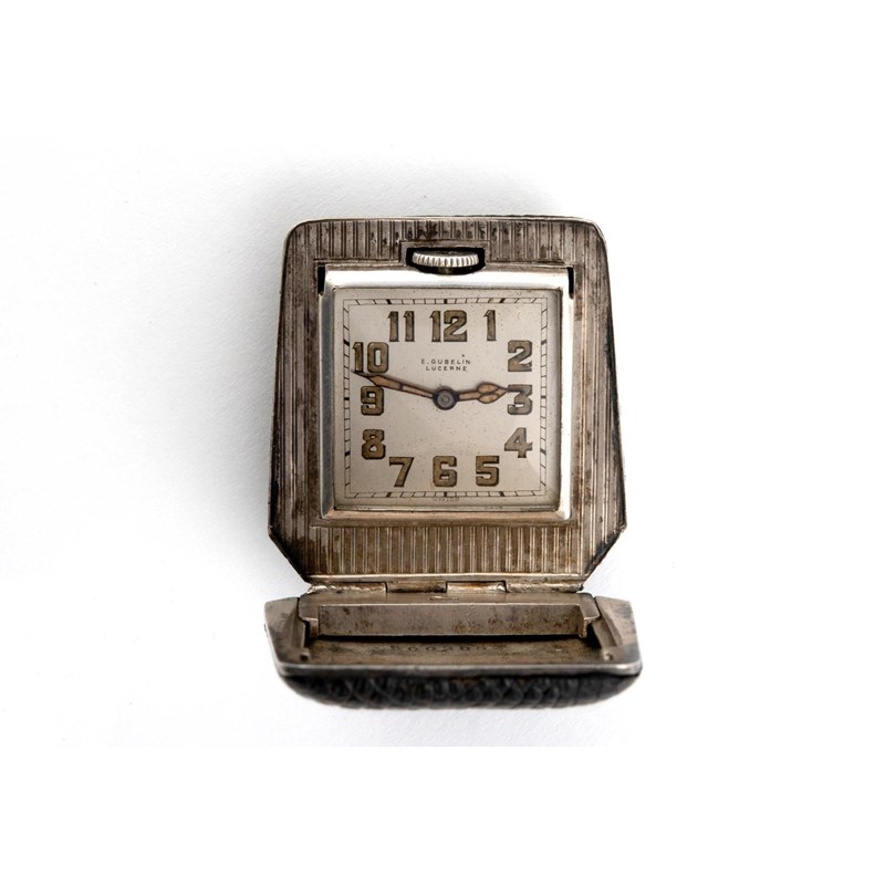 AN ART DECO SILVER TRAVELLING WATCH BY GUBELIN