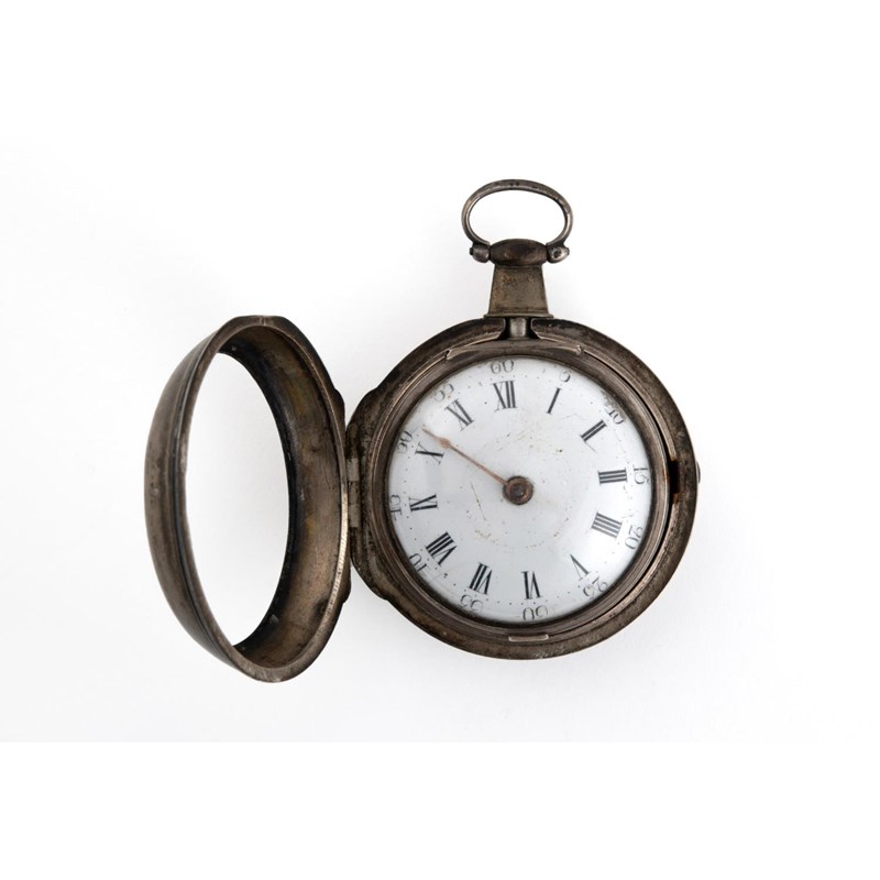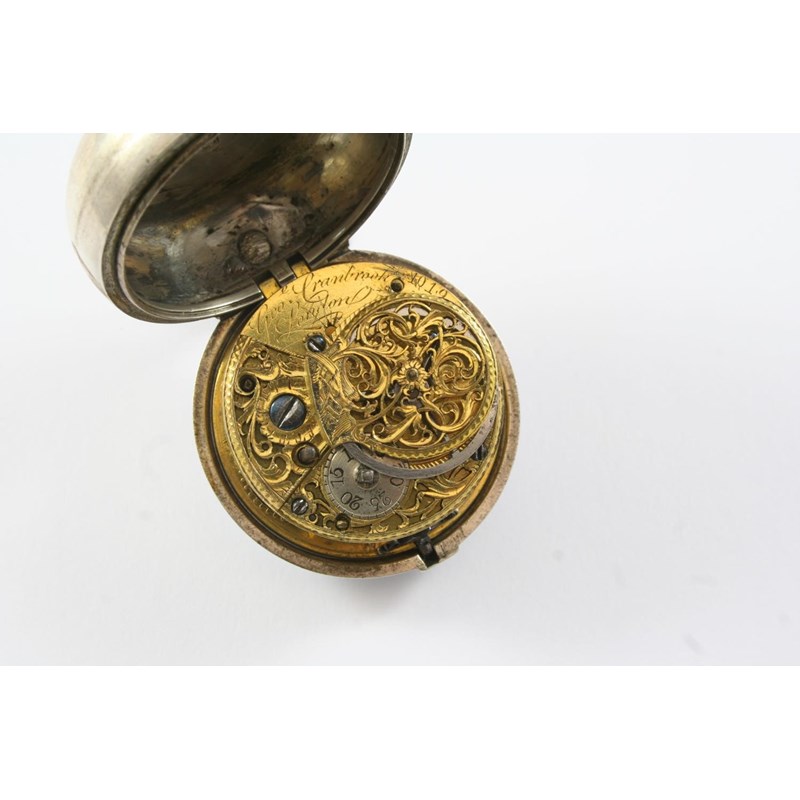 AN 18TH CENTURY SILVER PAIR CASED POCKET WATCH the white enamel dial with Roman numerals, the case hallmarked for London 1779, maker's mark SP, the movement signed George Cranbrook, London, 54mm dia
