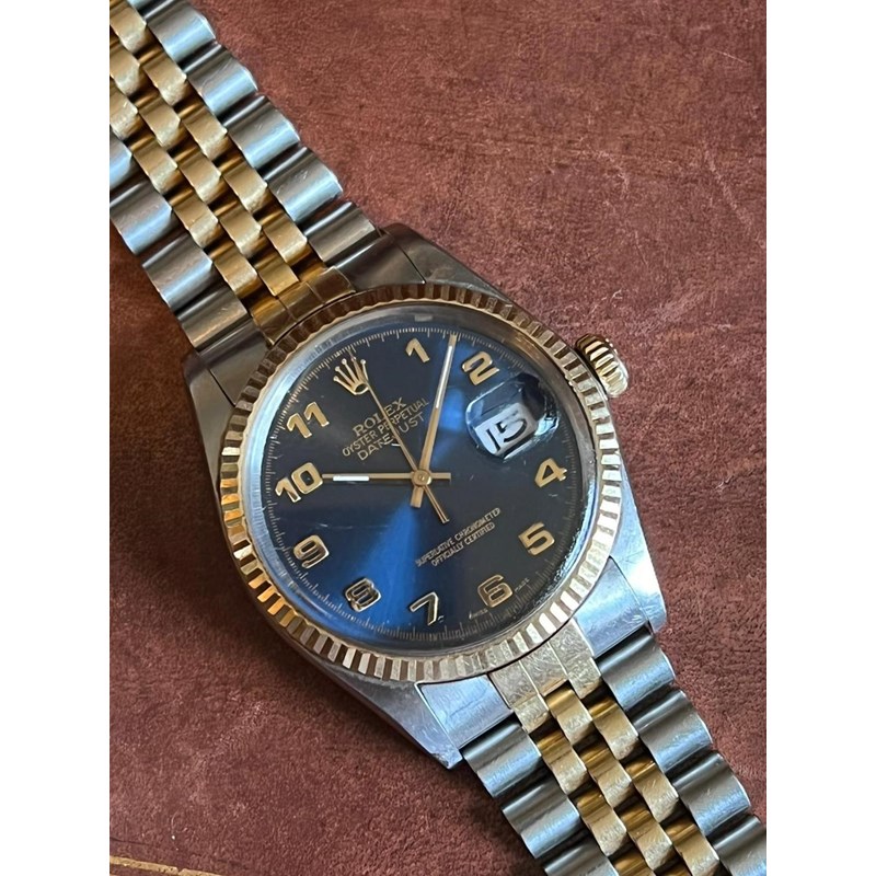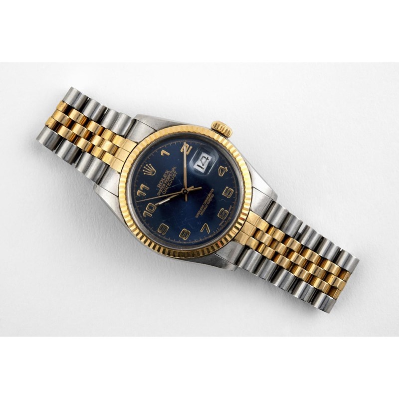 the signed blue dial with Arabic numerals, model number 16013, case number 9719014, on a Jubilee bracelet, the clasp stamped 62523H L6, 38mm dia