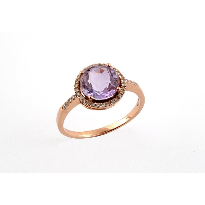 AN AMETHYST AND DIAMOND CLUSTER RING the circular-cut amethyst is set within a surround of circular-cut diamonds, in 14ct gold. Size U