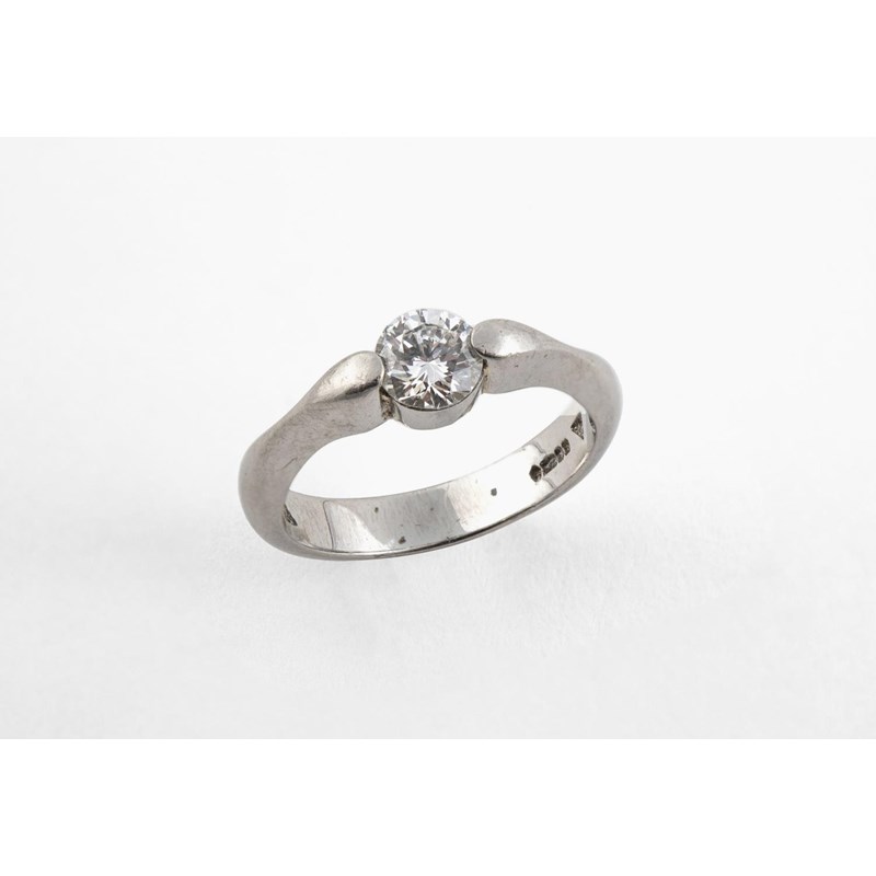 A DIAMOND SOLITAIRE RING the brilliant-cut diamond weighs 0.51 carats and is set in platinum. Size L