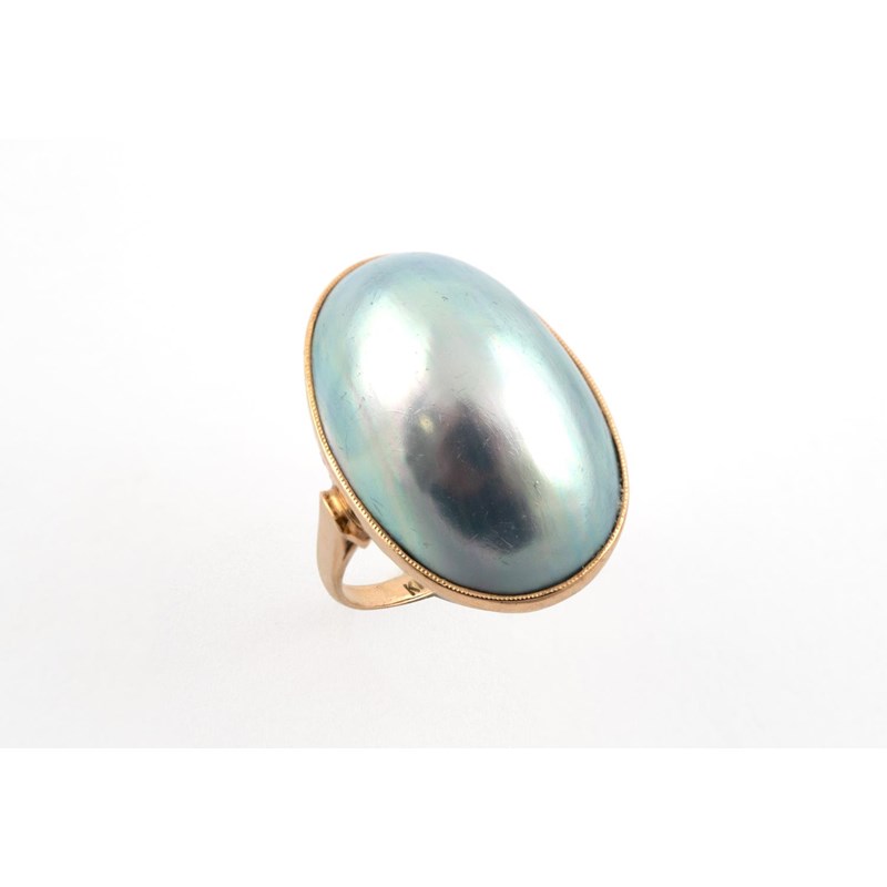 A MABE PEARL SINGLE STONE RING the oval-shaped mabe pearl is set in 18ct gold. Size M 1/2