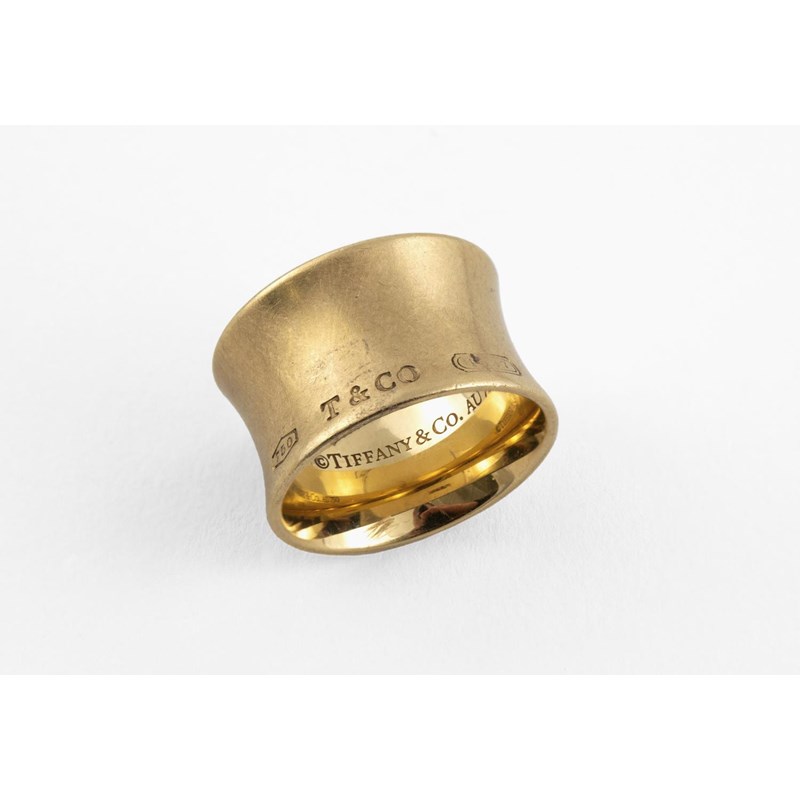 AN 18CT GOLD RING BY TIFFANY & CO. of waisted design, 10.7 grams. Size J 1/2