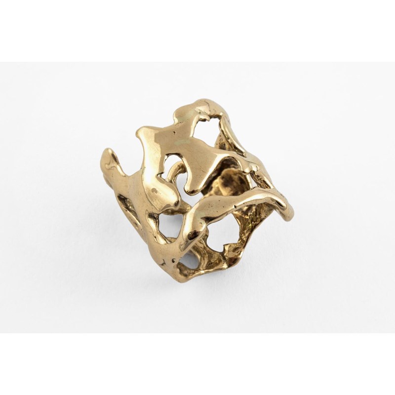 AN 18CT GOLD RING BY MALCOLM FREDERICK BRUNNING of openwork abstract design, with maker's initials and hallmarked for London 1966, 15.7 grams