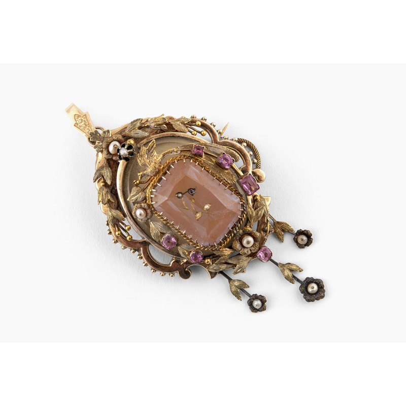 A GOLD AND PASTE SET MOURNING BROOCH PENDANT