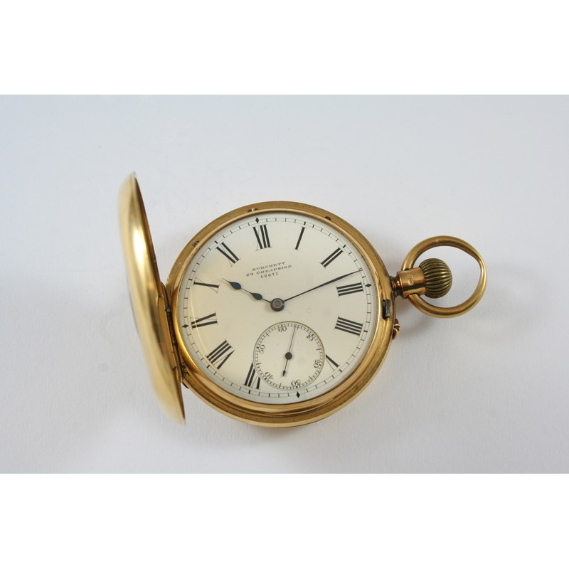AN 18CT GOLD HALF HUNTING CASED POCKET WATCH
