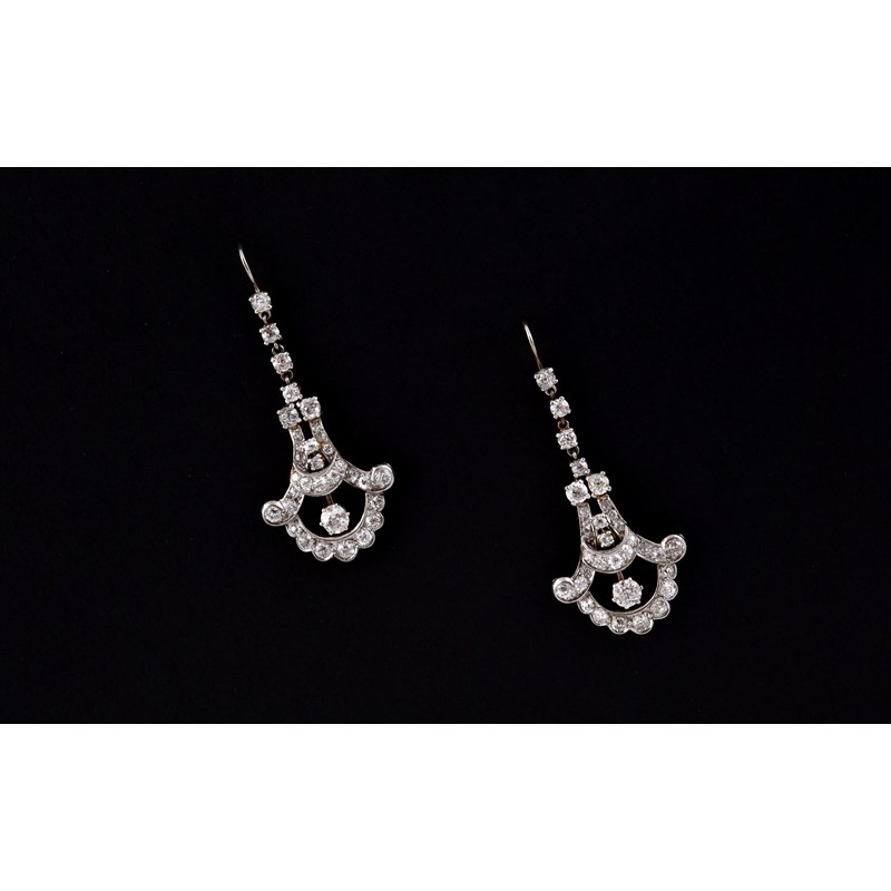 of openwork design, mounted with graduated circular old-cut diamonds, 5.5cm long