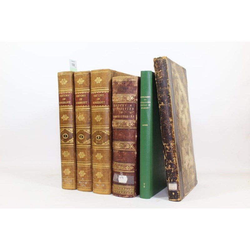 Collinson, John. The History and Antiquities of the County of Somerset, 3 volumes, first edition, folding engraved map, 39 [of 41] engraved plates only, contemporary mottled calf, rebacked, 4to, bath: G.G. and J.J. Robinson, 1791; and 3 others, Somerset interest (6)