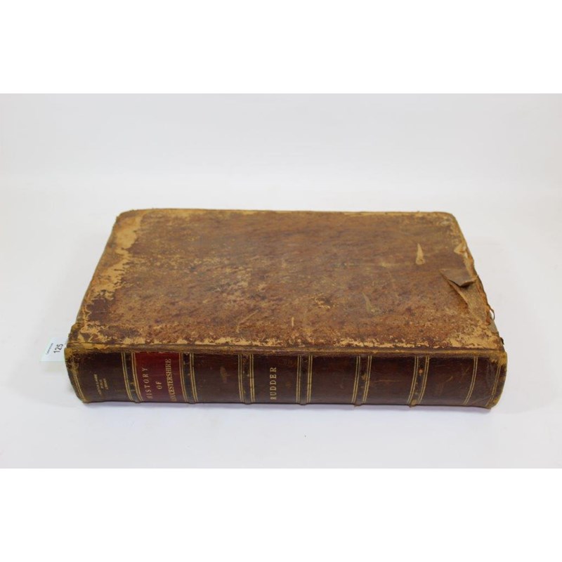 Rudder, Samuel. A New History of Gloucestershire, first edition, 6 engraved plates only, double-page engraved map, cropped and laid-down, title repaired, contemporary mottled calf, worn, rebacked, folio, Cirencester, 1779, sold w.a.f.