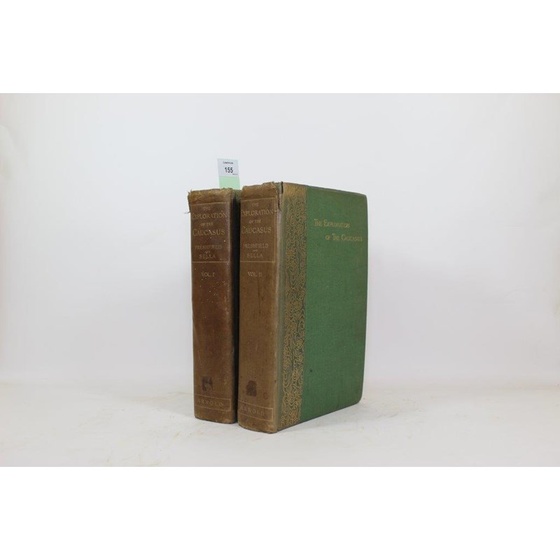 Freshfield, Douglas W., and Vittorio Sella. The Exploration of the Caucasus, 2 volumes, first edition, 76 full-page plates, a few folding, 3 folding panoramas, 4 folding maps, one in pocket at the end of of volume 2, spotted, volume one with hinges broken, a few leaves loosening, original cloth gilt, head of spines chipped, spines darkened, top edge gilt, ex-library copy, with usual markings, 4to, London: Edward Arnold, 1896