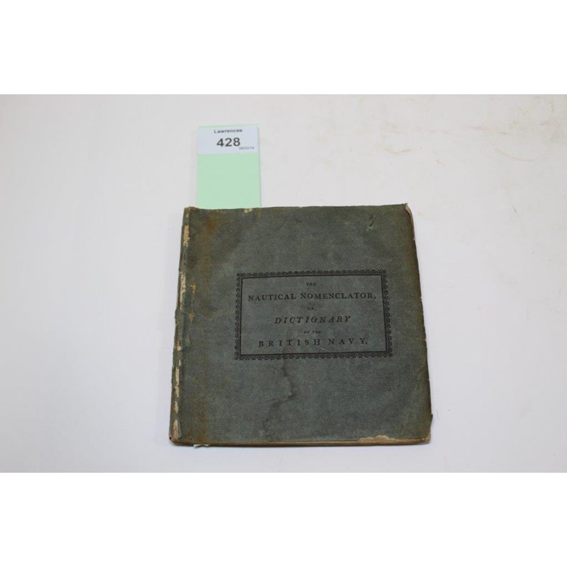Losack, William. The Nautical Nomenclature; or Dictionary of the British Navy. In Which is Explained the Meaning of the Name of Every Ship, Obvious or Abstruse, Foreign or Native, belonging to Great Britain, 2pp. of advertisements at end, dampstained, original wrappers, 8vo, London: David Steel, [c.1790]