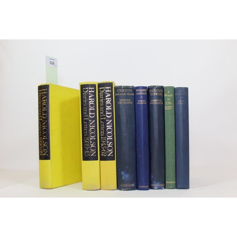 Nicholson, Harold. Diaries and Letters 1930-1962, 3 volumes, first editions, portrait frontispieces, plates, original cloth, bookplate of Alan Lascelles, 8vo, London: Collins, 1966-1968; and 5 others.