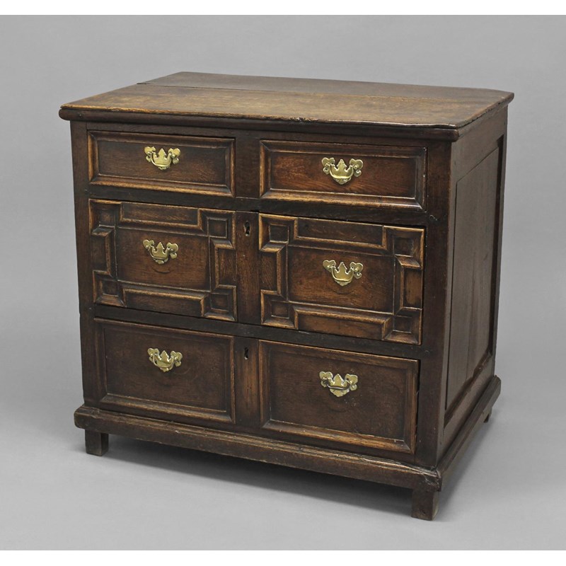 AN 18TH CENTURY OAK CHEST OF DRAWERS,